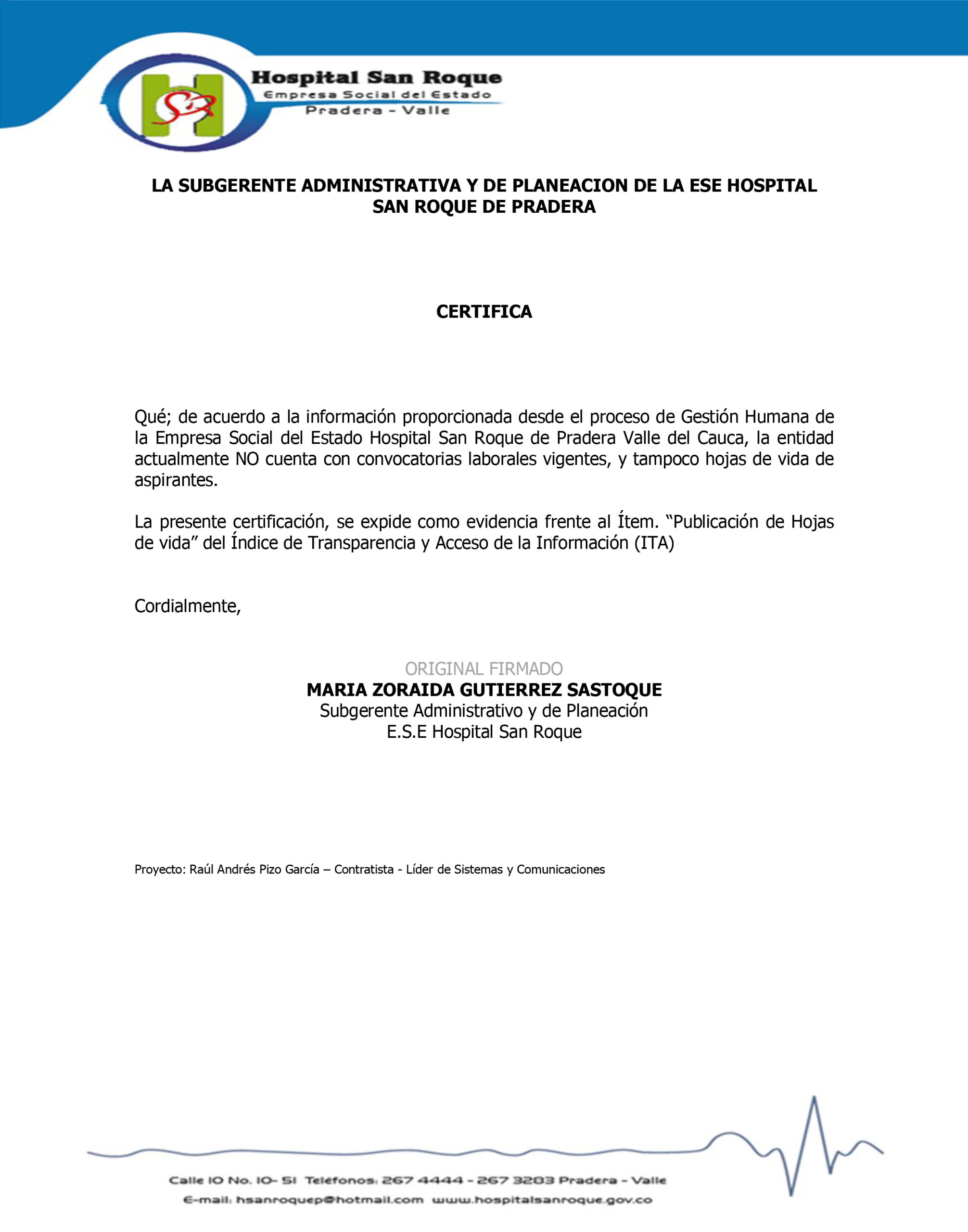 - PUBLICACIÓN DE HOJAS DE VIDA